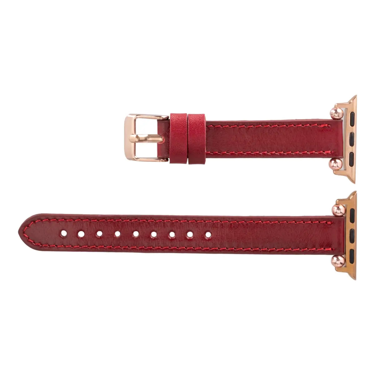 Burnished Red Leather Ultra Slim Apple Watch Band